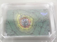 大地の凸凹はどんな風にできたのかを学んだあと、富士山の等高線図を透明トレーに1本ずつ引くことで立体地形図をつくりました。