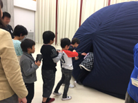 いつもは見るだけのプラネタリウムですが、この日は自分でミニプラネタリウムをつくって、その仕組みをまなび、さらに本物のプラネタリウムの中で実際に投影してみるというなかなか体験できない一日となりました。